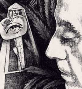 I used the thistle as part of a plant motif that frames my portrait of the artist, Marcel Duchamp, and one of his artworks, and ties the drawing together.